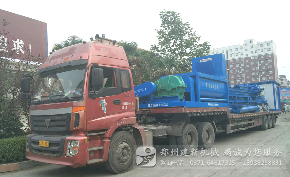 本月19日下午,兩輛半掛貨車在鄭州建新機(jī)械等待裝貨,此次要發(fā)出的是一套WBZ600穩(wěn)定土拌和站,每小時(shí)可達(dá)到600噸穩(wěn)定土的產(chǎn)量。WBZ600穩(wěn)定土拌合站主機(jī)采用雙臥軸連續(xù)式無(wú)襯板攪拌機(jī),維護(hù)方便,拌料均勻,生產(chǎn)效率高。設(shè)備于下午五點(diǎn)左右裝車完成,即將發(fā)往廣西。