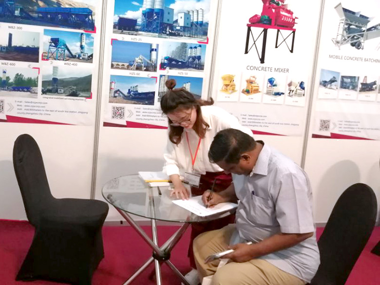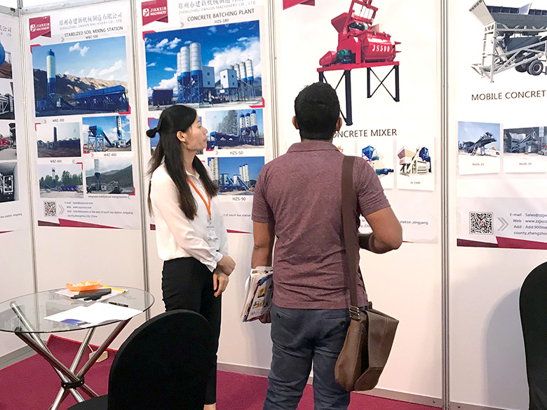 混凝土攪拌站、WBC系列穩(wěn)定土拌合站等產(chǎn)品吸引了絡(luò)繹不絕的觀展者駐足洽談。接待人員不失時機(jī)地向來觀展的客戶介紹建新機(jī)械的技術(shù)優(yōu)勢、產(chǎn)品特點(diǎn)、售后服務(wù)及銷售代理政策,其熱情的講解受到了廣大斯里蘭卡客戶和當(dāng)?shù)毓こ虣C(jī)械人士的關(guān)注,部分客戶當(dāng)場展開了詳細(xì)的商談。